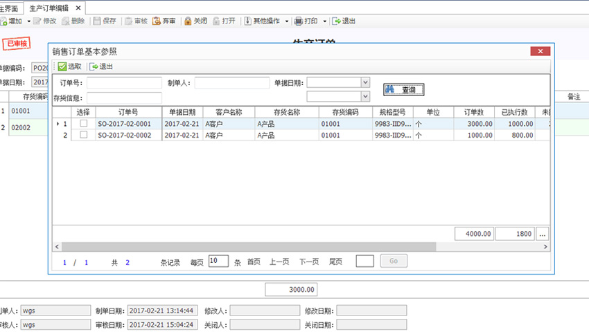 5、 与T+系统进行集成,由T+系统自制加工单或销售订单,流转生成本系统的生产订单。也可独立使用,手工增加生产订单。